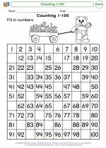 Counting to 100 | Worksheet | Education.com Entire Library Worksheets First Grade Math Counting to 100. Worksheet Counting to 100. Is your kid crazy about counting? This number chart gives him a real counting challenge in naming the numbers up to 100. Can he fill in the missing numbers to reach 100? As he counts along, he'll get stronger at writing numbers, too.